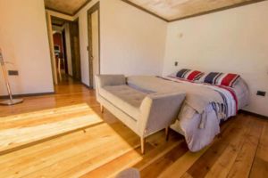 Este hogar clásico es un deleite visual, destacando la madera laminada en sus vigas a la vista. Las mismas no solo garantizan un rendimiento estructural superior, sino que también proporcionan una atractiva espacialidad interior al living. El encanto se potencia aún más con la luminosidad que se filtra a través del imponente vitral central ubicado en los espacios comunes.